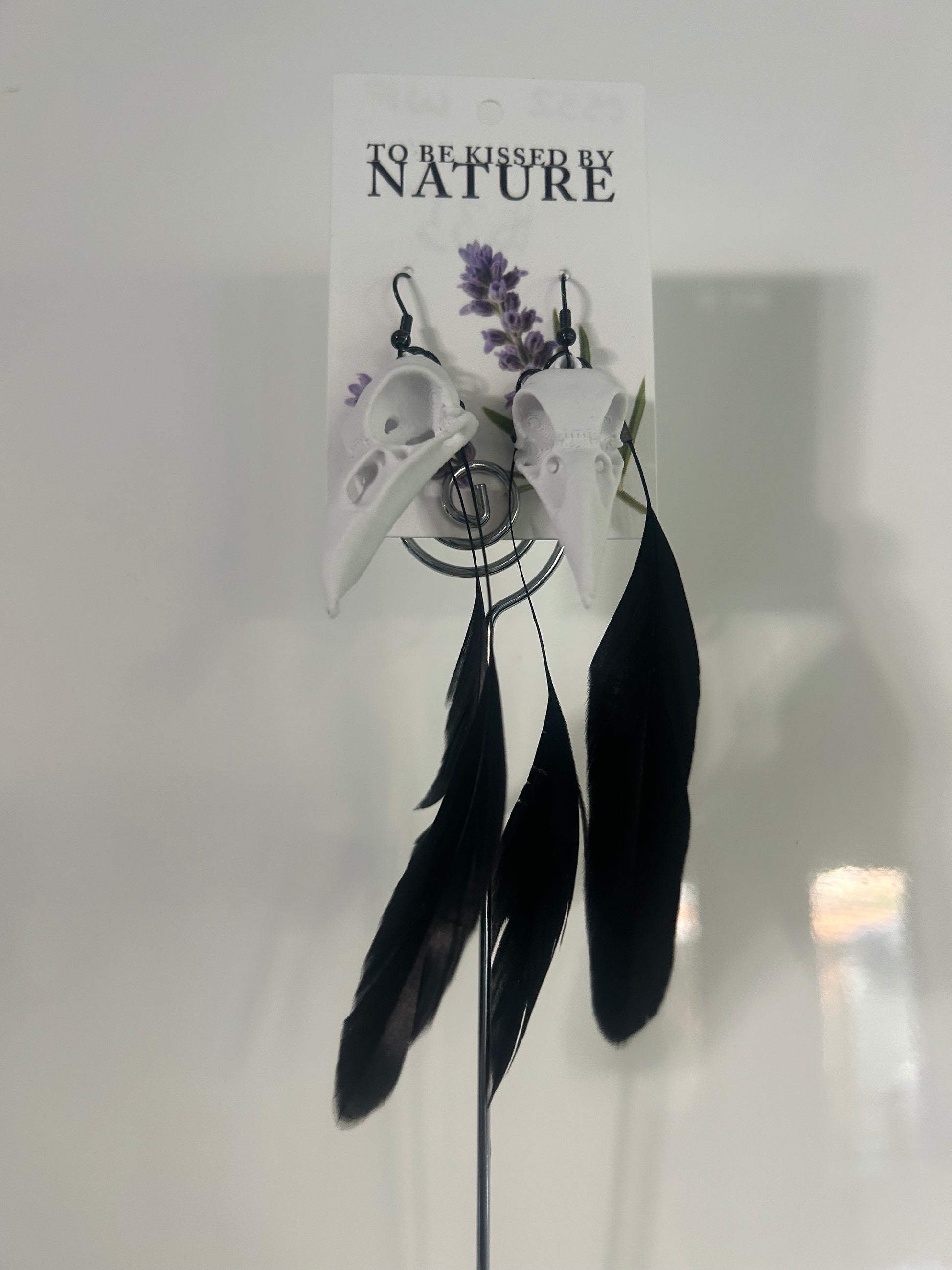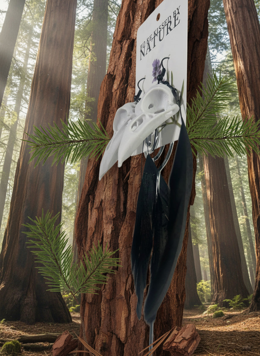 Crow Skull Earrings with black feathers