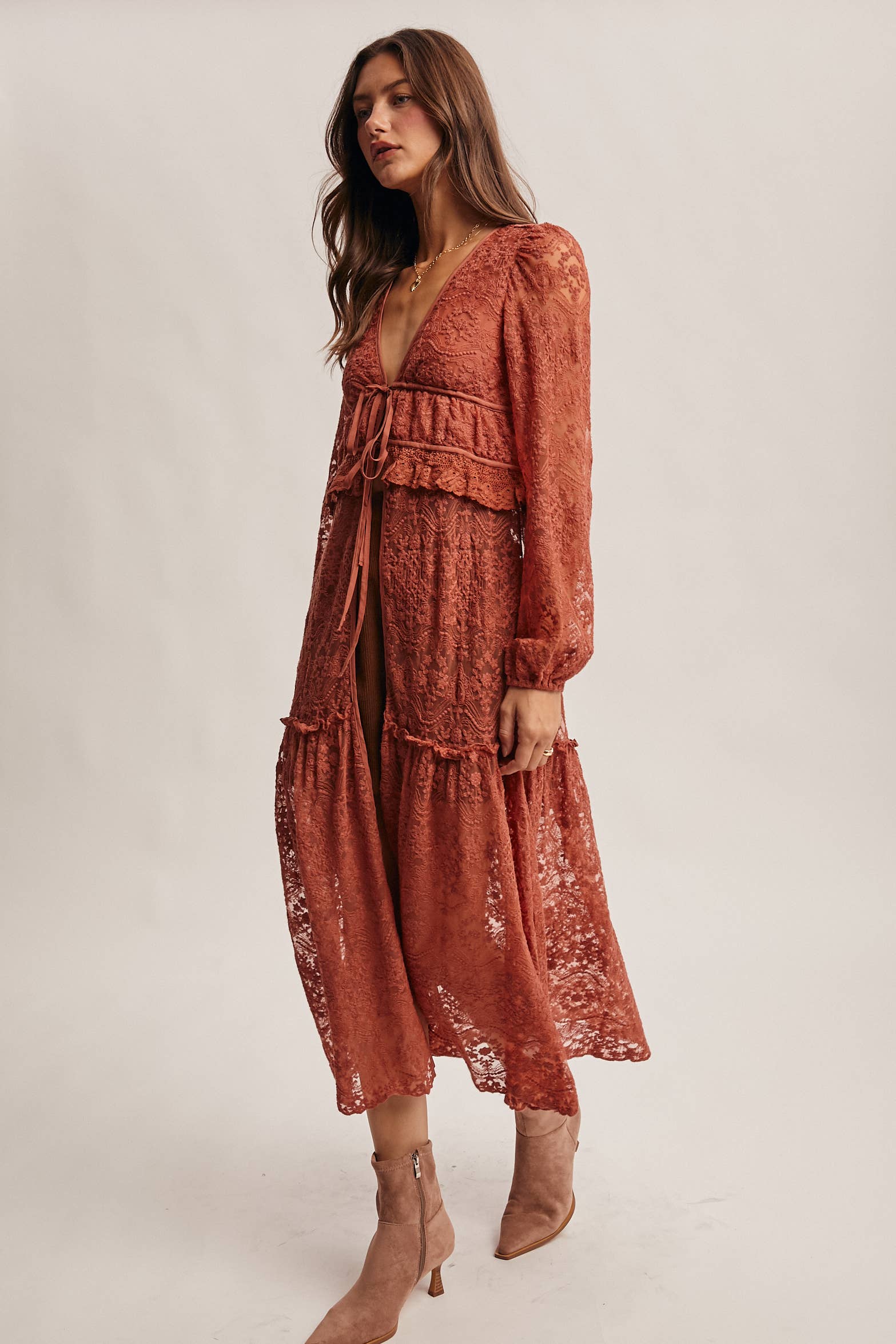 Lace Ruffle Maxi Duster FJ0003: Terracotta / Contemporary / S